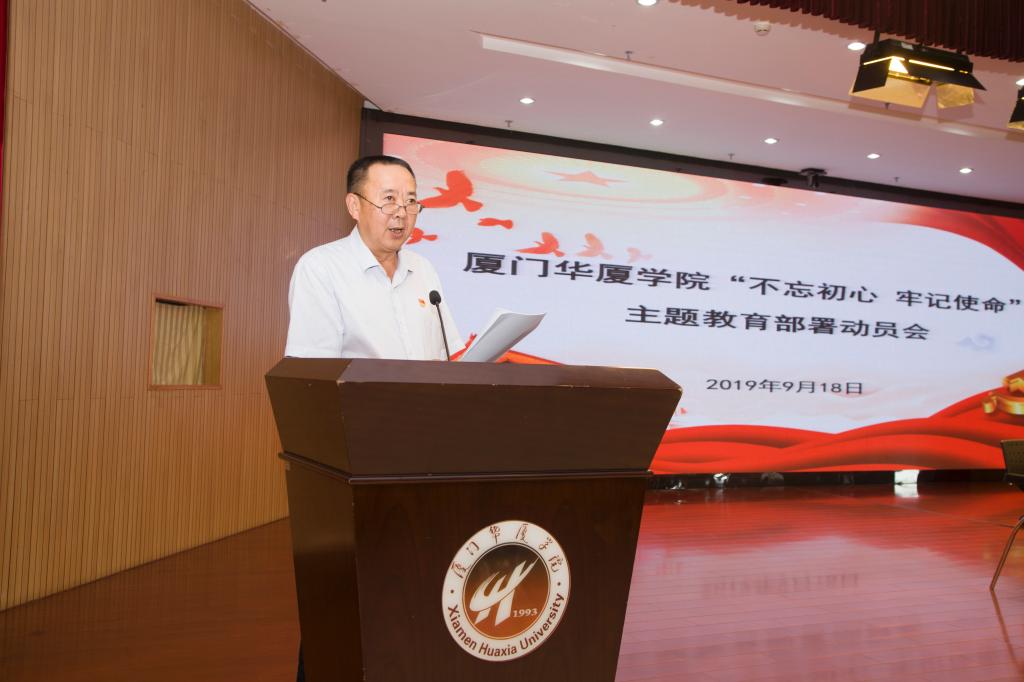 会上,校党委书记张剑辉传达学习习近平总书记在“不忘初心、牢记使命”主题教育工作会议上的重要讲话精神和省委、市委和市教育工委的部署要求,并就我校高质量开展主题教育提出三点意见:一是突出抓好党委班子成员主题教育,以习近平新时代中国特色社会主义思想为指导,高标准开展学习教育,把学习教育、调查研究、检视问题、整改落实贯穿主题教育始终,把每一项基本要求做扎实、做到位,确保不走形、不变样,先学先改、即知即改,示范带动广大党员、干部的学习教育;二是做实党支部学习教育和检视整改。结合“两学一做”学习教育常态化制度化,依托“三会一课”、主题党日等工作,按照校党委《关于开展“不忘初心、牢记使命”实施方案》和主题教育实施计划的安排,进一步细化学习要求和学习计划,结合专项整治,先行整治软弱涣散党支部,加强教师党支部“双带头人”建设,全面推进党支部“达标创星”,根据校党委《关于开展党建品牌提升工作的方案》要求进一步深化培育党支部品牌建设;三是加强组织领导。坚决贯彻落实党中央、省委、市委和市教育工委的各项决策部署,以认真负责的态度、改革创新的精神、求真务实的作风,压紧压实责任,强化统筹兼顾,营造良好氛围,高质量开展主题教育各项工作,奋力开创新时代华厦学院高质量发展新局面。