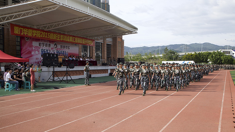 在随后举行的开学典礼上,王小如校长在讲话中指出,今年的军训是华厦升格本科后的第一次军训,具有特殊的历史意义。她希望同学们巩固和发扬军训成果,把在军训中锤炼的好思想、好作风带到今后的学习、生活中去,立志成为全面发展,理想远大,品德高尚,学有专长的具有创新精神和实践能力的优秀人才。2015级通信工程(本科)2班学生王越代表全体新生发言,他表示要牢记老师们的入学教诲、父母的深切期望和军训中学习到的艰苦奋斗精神,以饱满的热情和坚定的信念去迎接前进路上的挑战,为自己的人生画卷添上精彩的一笔,在华厦成才,在华厦圆梦。