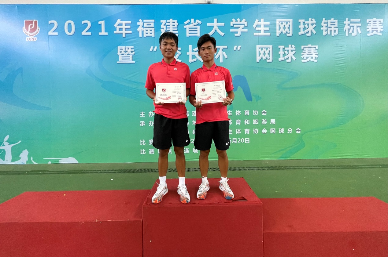 6月20日下午,由福建省大学生体育协会主办的2021年福建省大学生网球锦标赛暨“校长杯”网球赛在连城县顺利收官。我校体育教学部陈可佳老师带队并选派10名队员(男子:叶泽生、王彬、曾梓扬、吴昊飞、张鑫燕、黄绍艇,女子:邓丽频、张秀悦、兰冰、魏若珊)参加了大赛甲A组比赛。经过激烈的角逐,我校网球代表队获得甲A组团体二等奖(第三名),叶泽生、王彬获得甲A组男双第一名,兰冰、魏若珊获得甲A组女双第一名,曾梓扬获得甲A组男单第二名,邓丽频获得甲A组女单第五名。这是继我校荣获第25届中国大学生网球锦标赛(华南赛区)男子甲组团体赛季军后,再次在省级网球大赛中斩获佳绩。