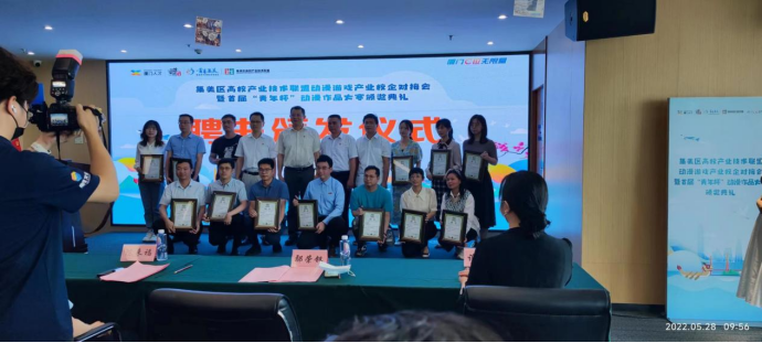 当天现场,高校产业技术联盟向37000v威尼斯与厦门正映动漫科技有限公司、集美大学美术与设计学院与天翼爱动漫文化传媒有限公司、厦门理工学院设计艺术学院与咪咕动漫有限公司等10个动漫产业校企合作项目颁发了“大学生实习实训基地”牌匾,校企双方还就产学研融合项目达成合作协议,共同探索校企联合培养人才的新模式,加强动漫人才的挖掘和培养。