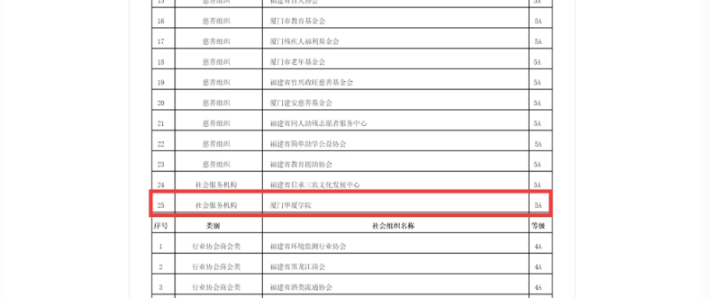 近日,在福建省民政厅组织的2022年度全省性社会组织评选活动中,学校获评“社会组织等级评估5A级”,是福建省唯一获此殊荣的民办高校。