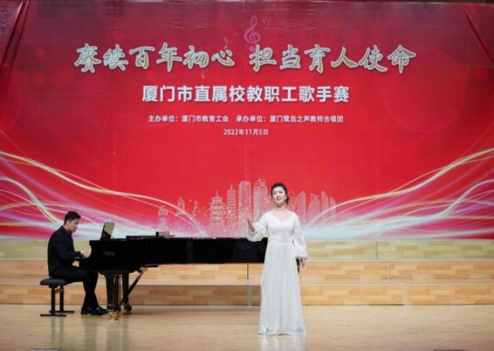 近日,由厦门市教育工会主办,厦门鹭岛之声教师合唱团承办的“赓续百年初心 担当育人使命”厦门市直属校教职工歌手赛决赛在厦门市五缘音乐厅举行。校工会联合人文学院组织我校青年积极参赛。我校人文学院音乐教育系李峥等五位教师经过第一轮的预赛,四位老师成功晋级决赛,并取得二等奖1项,三等奖3项的佳绩。