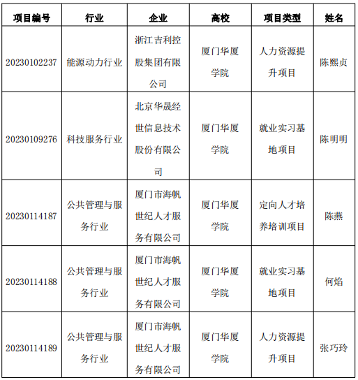 学校高度重视就业育人工作,认真落实教育部关于就业育人的新思路新举措。本次立项是我校继“华厦·国贸”产教融合项目入选教育部高校学生司第一期供需对接就业育人项目后再次入选,是聚焦深化产教融合与校企合作取得的有效成果。此次入选的包括人力资源提升项目、就业实习基地项目、定向人才培养培训项目等五个,具体如下:
