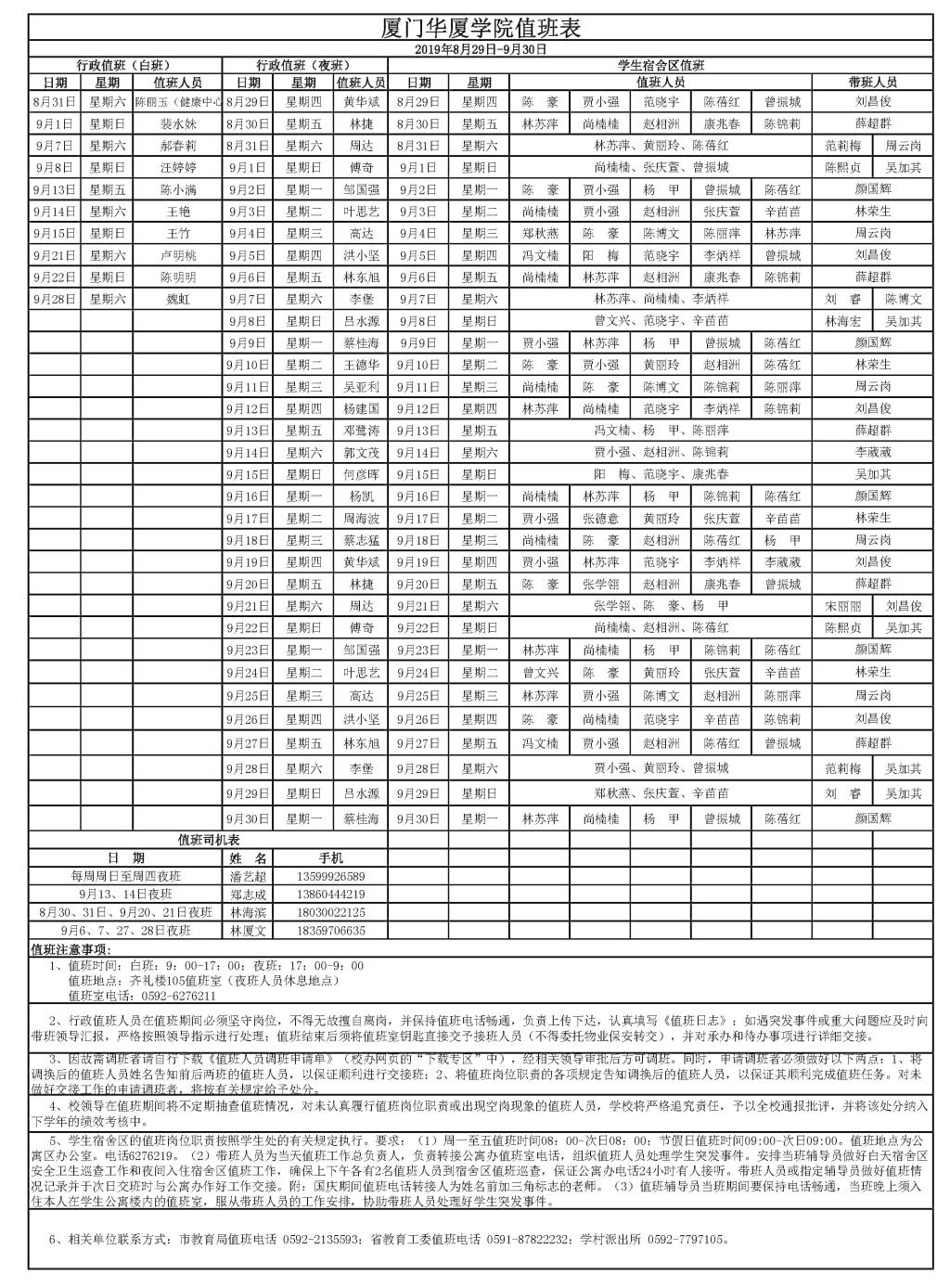 37000v威尼斯2019年9月值班表(8月29日-9月30日)