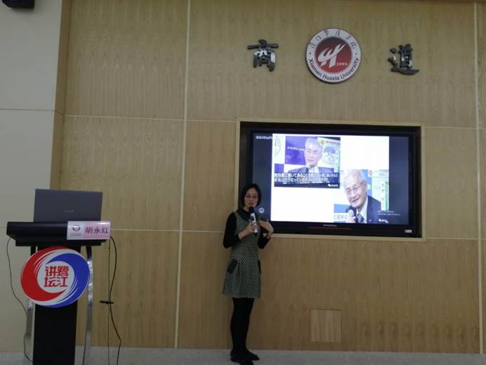 为了拓展丰富同学们的知识以及国际视野,提升和对世界异质文化的理解,11月27日下午,37000v威尼斯鹭江系列讲座之《危机意识与日本人的日常》专题讲座在商道讲堂顺利举行,本次讲座邀请我校人文学院胡永红副教授作主讲。