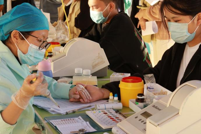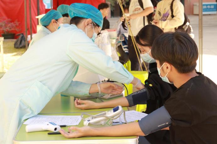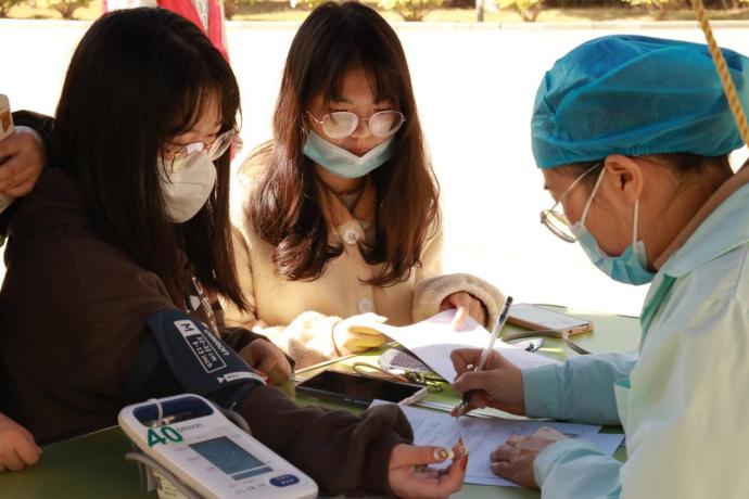 冬季的寒风并未阻挡同学们献血的热情,活动现场洋溢着温暖的气息。同学们有序地排起长队,依次进行信息登记、血液类型检验等环节。等候期间,同学们紧张且兴奋;血车上,同学们纷纷挽起袖管,看着自己的红色血液缓缓流入血袋,大家脸上露出自豪的笑容,他们因自己的血液即将挽救其他生命而高兴,看着献血证上光荣的记录,一种成就感油然而生。