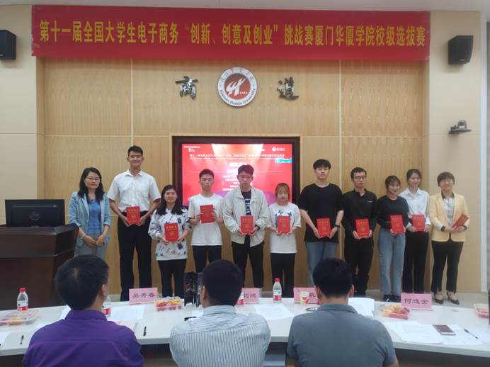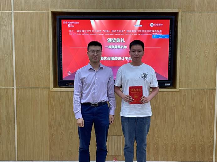 ▲电子商务专业何连金、孟凡美老师为获奖团队颁发获奖证书