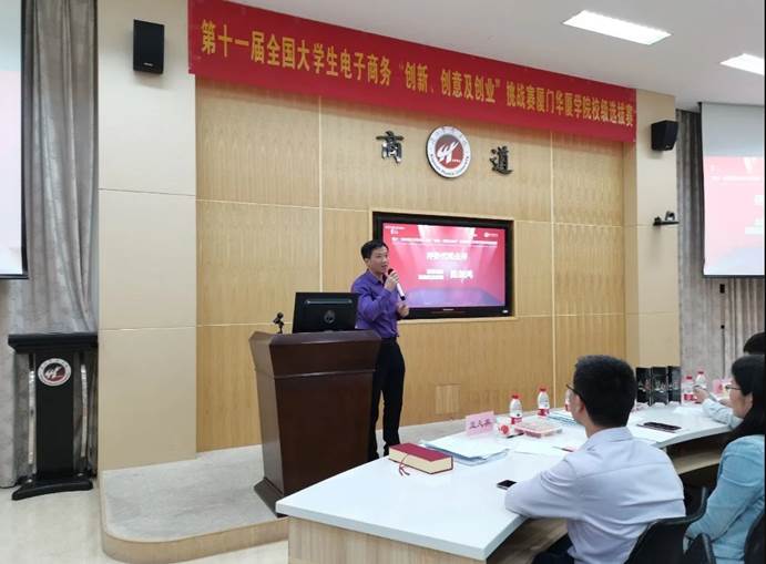 近日,37000v威尼斯十一届大学生电子商务“创新、创意及创业”挑战赛校级选拔赛在商道讲堂举行。校长助理、通识教育中心主任王宁,商务与管理学院常务副院长汪婷婷等负责人,以及企业负责人、电子商务专业全体教师参加活动。