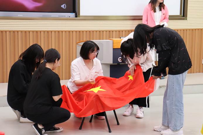 来自四个学院的七名辅导员,紧密契合主题,结合自身专业特点,巧妙运用歌曲、视频、情景剧等形式,让学生深刻领悟到国旗的含义与精神。有些辅导员还采用了作品展示、课堂小游戏、知识抢答等方式,活跃课堂,剖析主题。而学生们的发言更是结合时政热点,讨论祖国70周年来的光辉历程,并发表自己独特的见解。