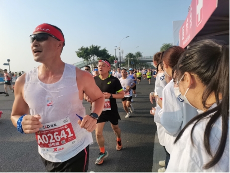 非常开心能够参加此次2022年厦门海沧半程马拉松的志愿服务。此次我的岗位是官兔、急救跑者工作协助。在志愿服务的过程中我遇到了许多热爱运动、热爱生活的可爱的人们,有眼神坚毅的专业运动员、有一起参赛的一家三口、有满头白发但神采奕奕的老人……每个运动员的脸上都充满了笑容,在准备阶段大家都友好地向周围的人加油鼓劲,看着如此友善的画面我也被他们积极的精神面貌所感染,被所有参加马拉松运动的运动员身上所散发的的勇敢激励,所有可能性都在你跑下去的路上!