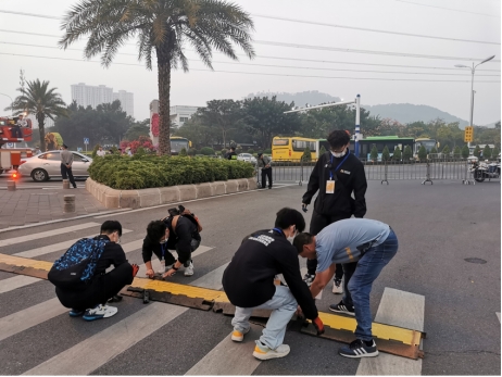 13日凌晨2:25,志愿者们早早在嘉禾苑1号楼小广场集合,并在各负责人的带领下,有序前往学校领取物资。简单吃完早餐后,志愿者们有序上车,前往赛事岗位点。