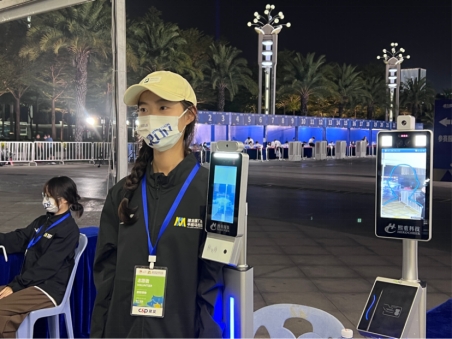 夜色朦胧也阻挡不了志愿者们的热情,到达岗位后,志愿者在晨光熹微中开始了紧张有序的志愿工作。企业拉拉队对接及现场引导、主会场嘉宾区服务、公交乘车引导、直播摄影、协助计时……虽然岗位不同,但使命相同,每一位志愿者都在用自己的实际行动为赛事保驾护航。