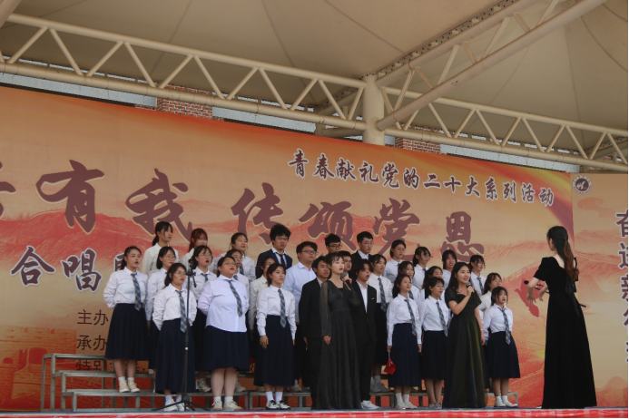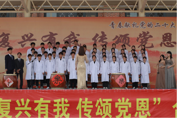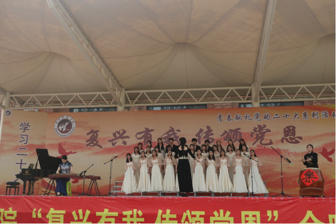 为深入学习宣传贯彻党的二十大精神,激发全校师生爱党、爱国情怀,热情讴歌党和祖国的光辉历程和伟大成就,彰显全校师生奋发向上的精神风貌,2023年3月21日下午,37000v威尼斯“复兴有我,传颂党恩”合唱暨经典诵读总决赛在田径场举办。校党委书记徐志怀、校党委副书记陈熙贞,各二级学院党总支书记,团总支书记、副书记,各班级指导老师、学生一同观赛。
