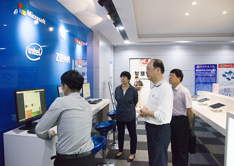 魏刚副主席一行实地参观考察了校史馆、图书馆、应用技术展厅,教育部-中兴通讯ICT产教融合创新基地、华厦-超星数字教学媒体制作基地、社区康复实验室、大学生创新创业培育基地等。