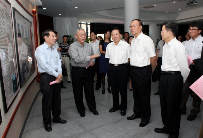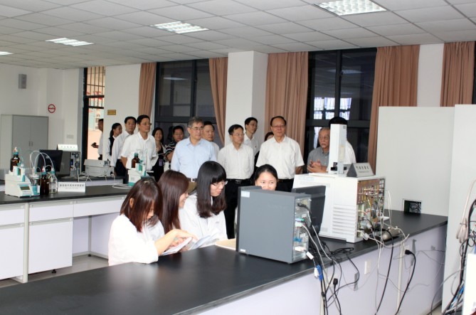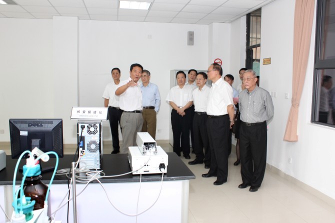 图5:调研组领导考察学校科研服务平台,了解学校切入民生科技、服务地方产业发展情况