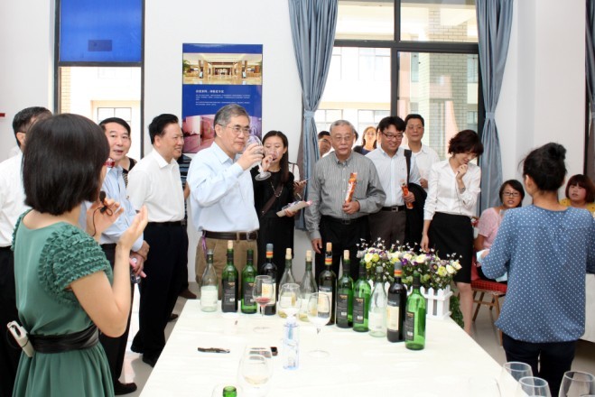 图10:调研组领导深入酒香飘溢、寓教于乐的《葡萄酒鉴赏》教学现场