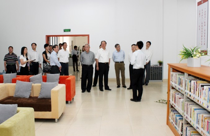 图3:调研组领导考察学校师生学习工作环境,了解开福建省先例的公共图书资源进校园